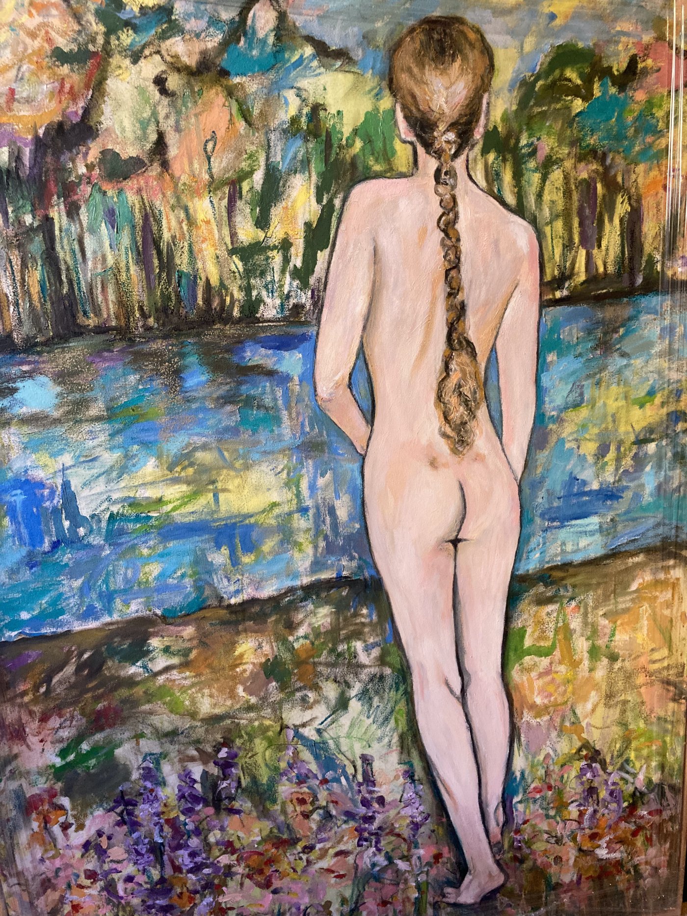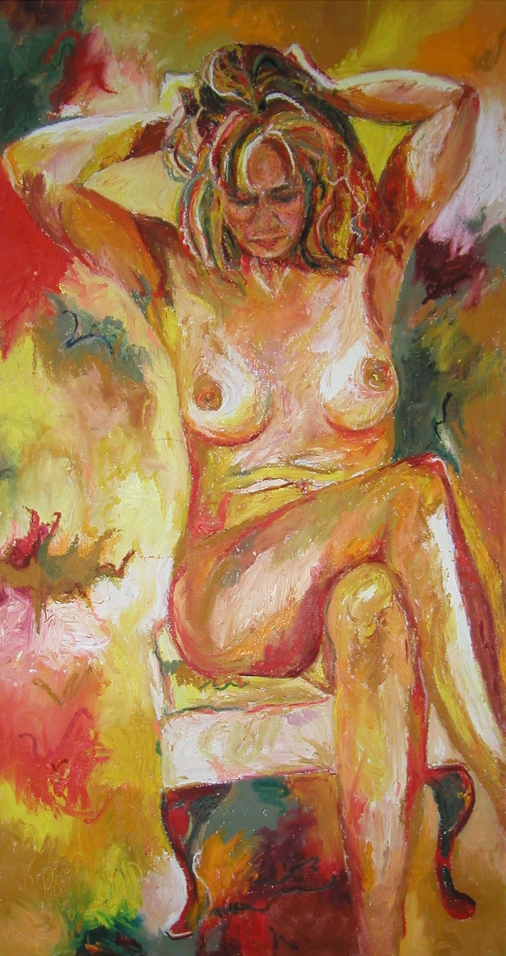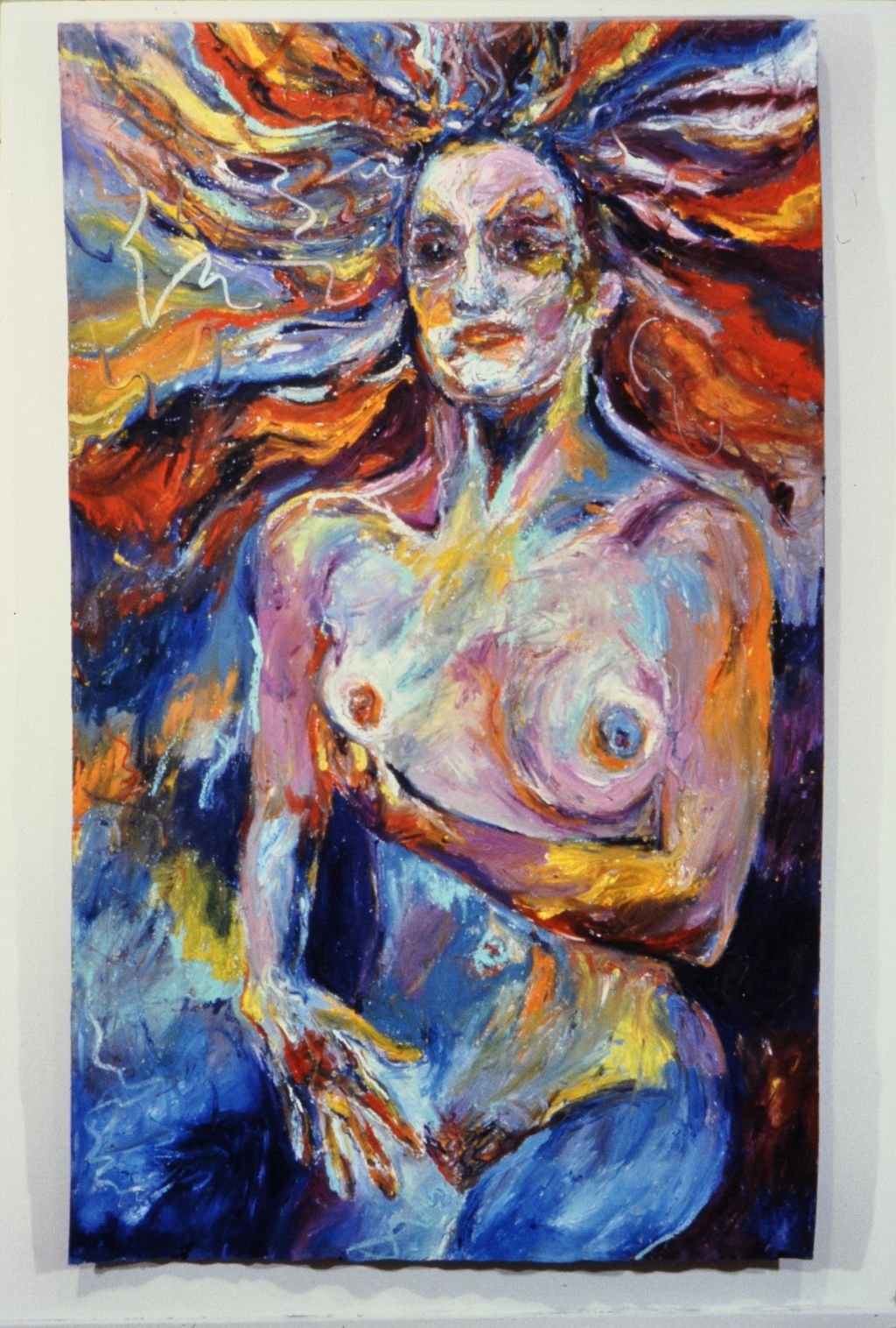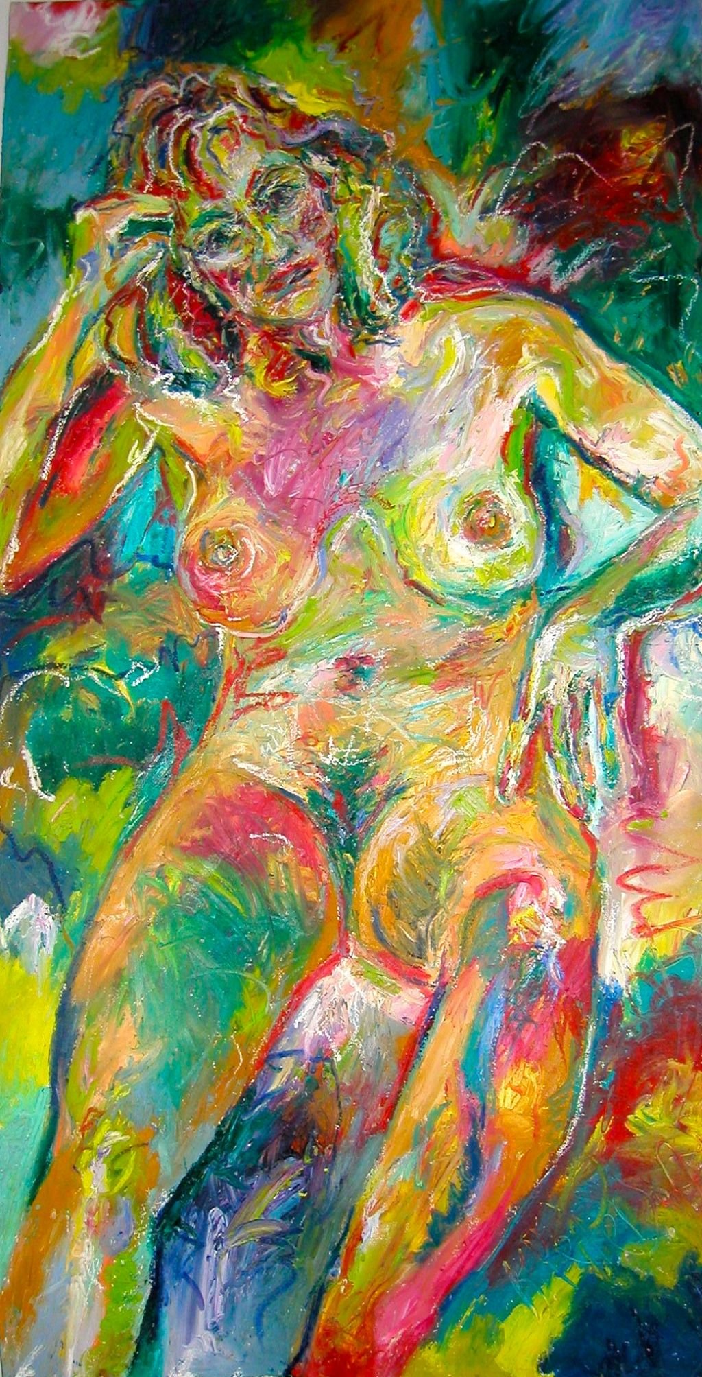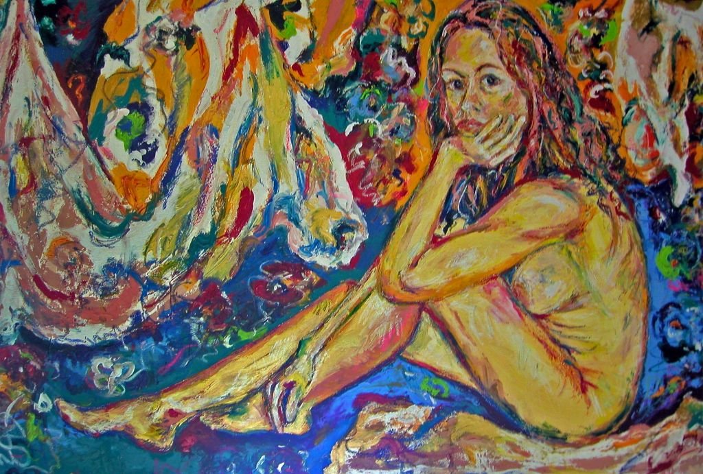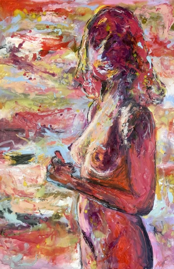 I have always loved the abstract expressiveness of painting. I use fabric dye, oil paint and oilsticks and encaustic wax on canvas and wood.